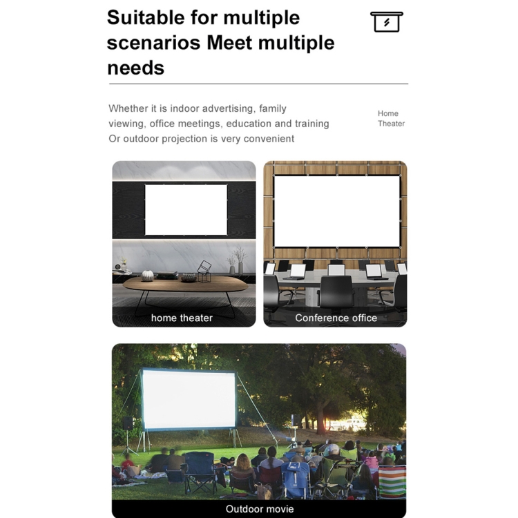 1. This movie screen adopts the principle of old-fashioned movie screens, which can be folded for easy carrying and can also be washed. It is suitable for use in fluid places or open spaces.