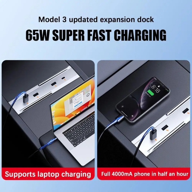 For 2023.9 Tesla Model 3 65W Central Control USB Interface Expansion Dock