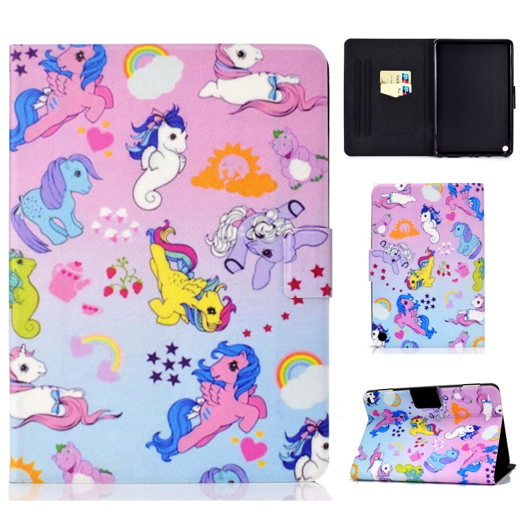 For Amazon Kindle Fire HD 8 (2020) Sewing Thread Horizontal Painted Flat Leather Case with Sleep Function & Pen Cover & Anti Skid Strip & Card Slot & Holder