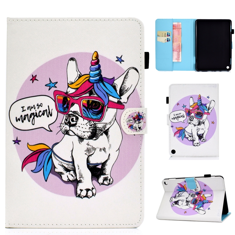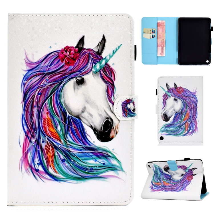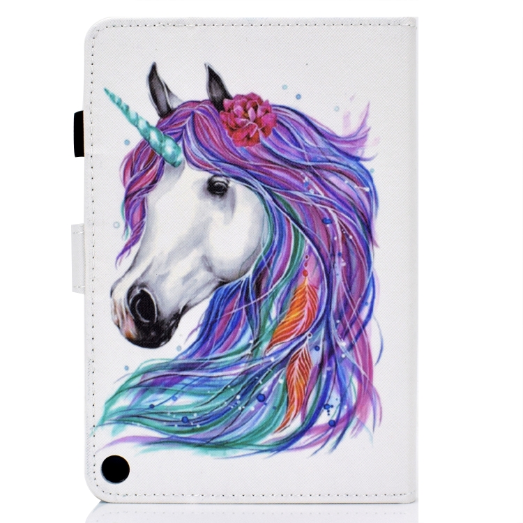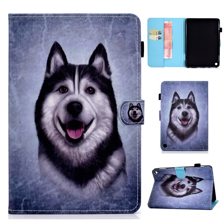 For Amazon Kindle Fire HD 8 (2020) Sewing Thread Horizontal Painted Flat Leather Case with Sleep Function & Pen Cover & Anti Skid Strip & Card Slot & Holder