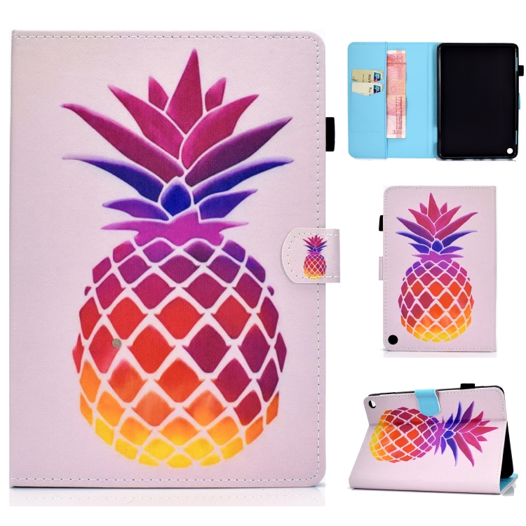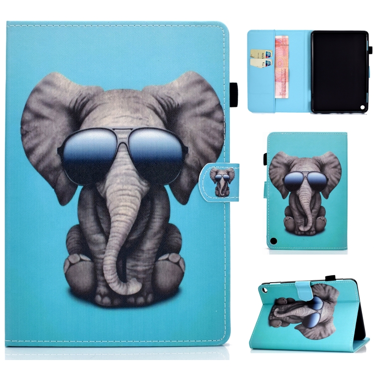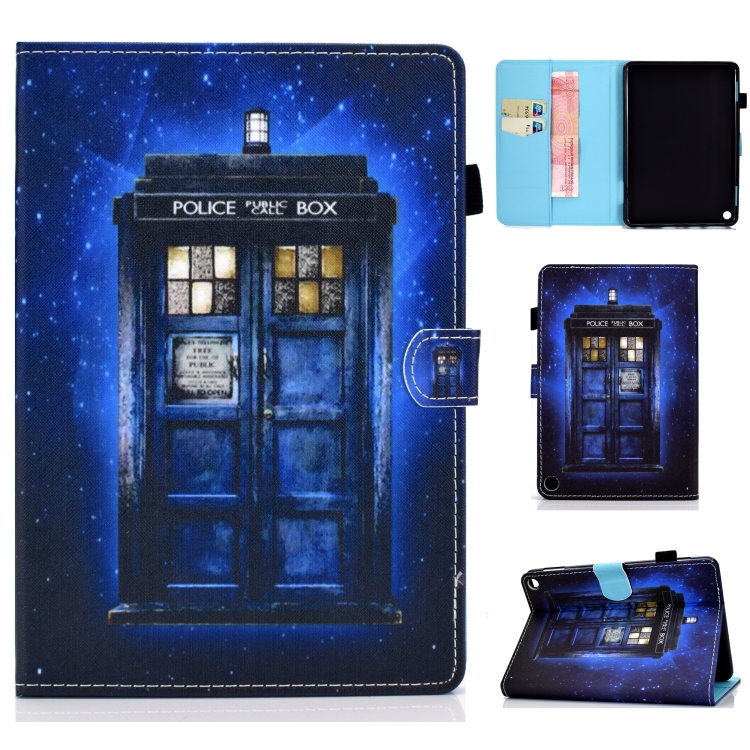 For Amazon Kindle Fire HD 8 (2020) Sewing Thread Horizontal Painted Flat Leather Case with Sleep Function & Pen Cover & Anti Skid Strip & Card Slot & Holder
