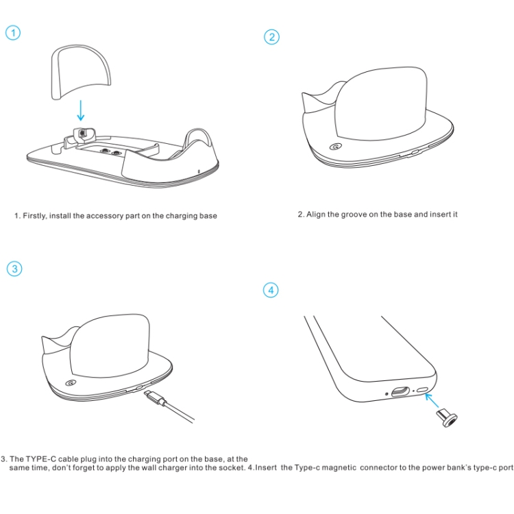 3. The charging base has a built-in power management chip with functions such as temperature protection, short circuit protection, reverse connection protection, and timeout protection.