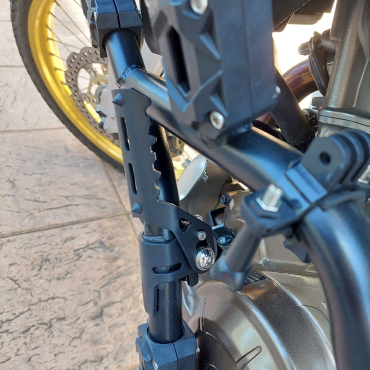 3. A way to relax your legs on long journeys! These highway pegs are additional folding foot rests that let you stretch out your legs into a more comfortable position while riding. They make long runs a breeze.