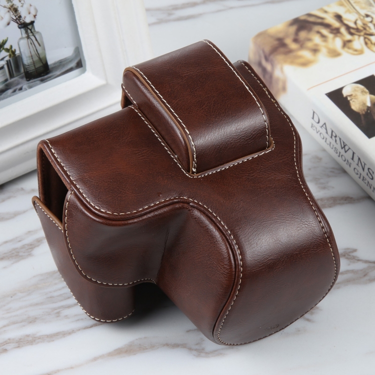 For Canon EOS R10 Camera Full Body Magnetic Leather Camera Case Bag with Strap
