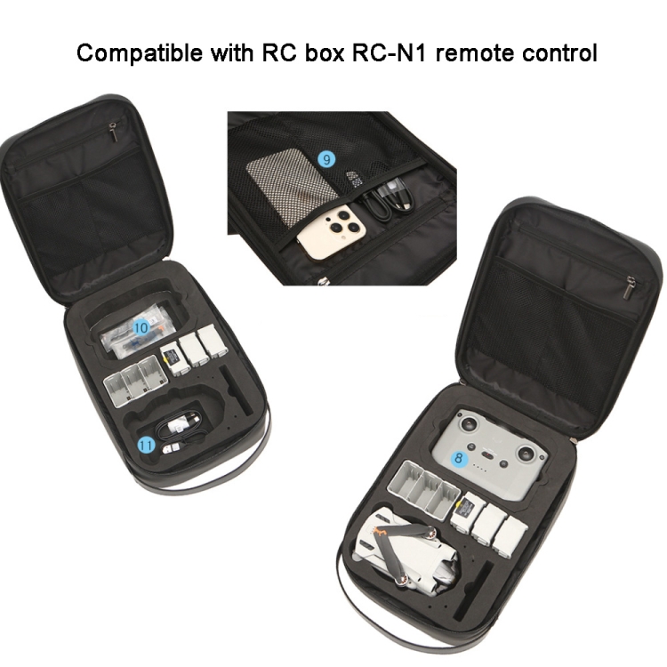 2. It can store the fuselage, RC or RC-N1 remote control, three batteries (plus four on the fuselage), the original battery butler (the sub-factory can’t put it), filter box, joystick, paddle data cable, etc.