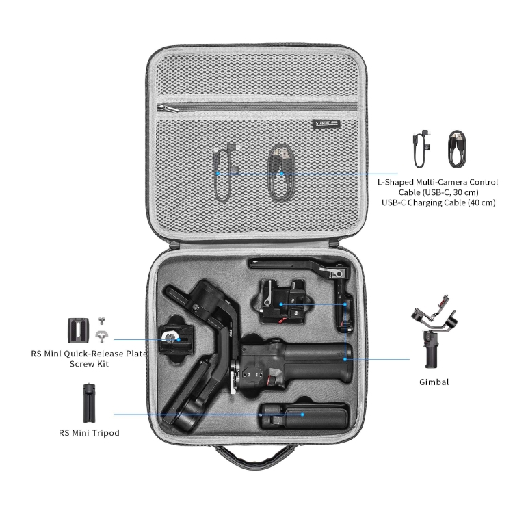 1. Specially designed for the DJI RS 3 mini series, precise mold opening, can accommodate the main body of the gimbal + tripod + quick release plate + other small accessories