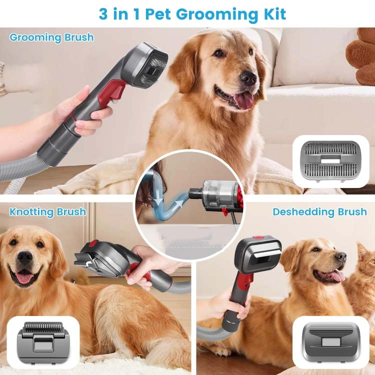 2. Equipped with three multi-functional pet brush attachments, including a combing brush, a floating brush and a knotting brush, these brushes can meet your different needs. The cat combing brush is a smooth brush for daily combing; the dog knotting brush is suitable for use when the hair is tangled. The floating brush is used to remove loose undercoat.