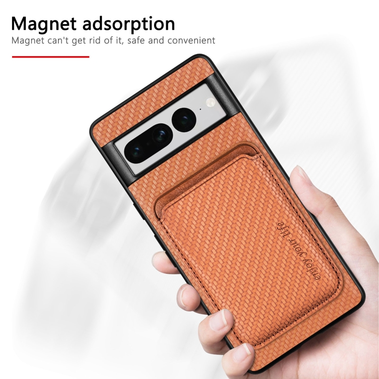 For Google Pixel 7 Pro Carbon Fiber Leather Card Magsafe Phone Case