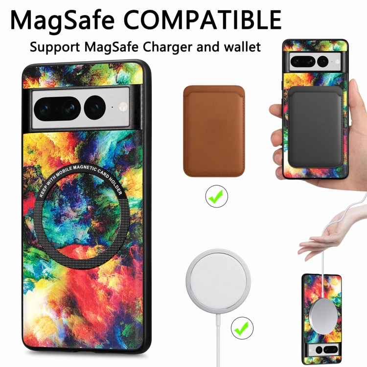 For Google Pixel 7 Pro Colored Drawing Leather Back Cover Magsafe Phone Case
