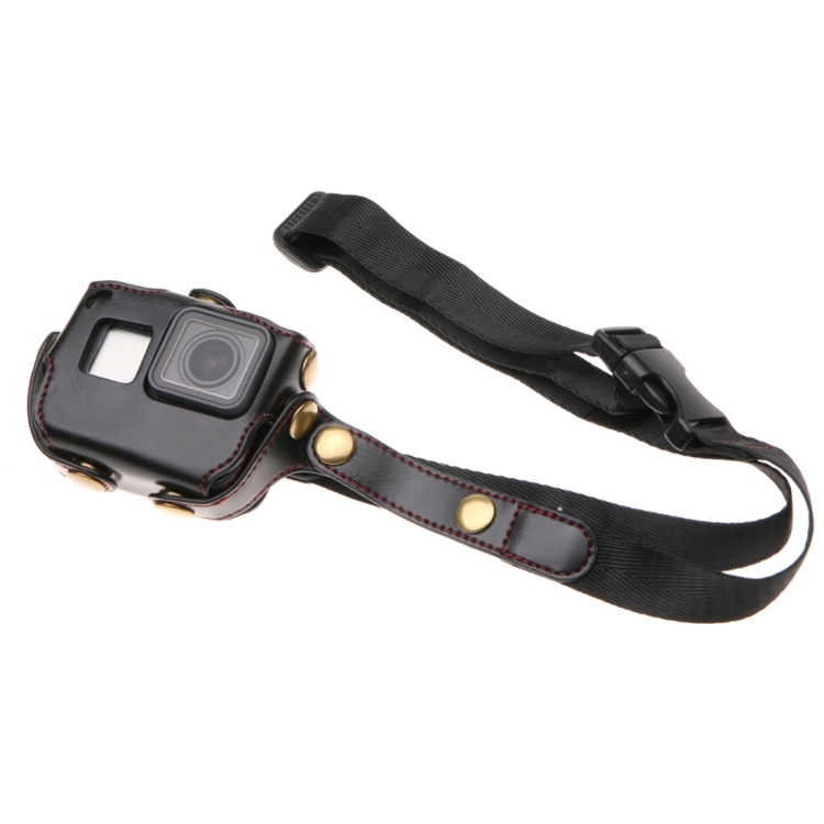 For GoPro HERO7 Black /6 /5 PU Leather Housing Case with Neck Strap & Buttons