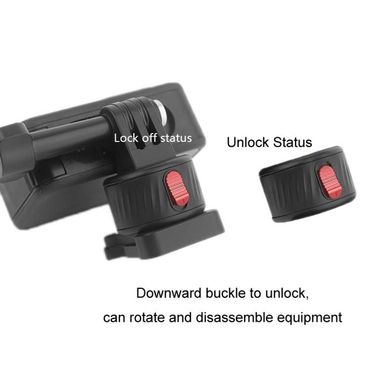 4. Push the lock down to unlock, and the device can be rotated and disassembled