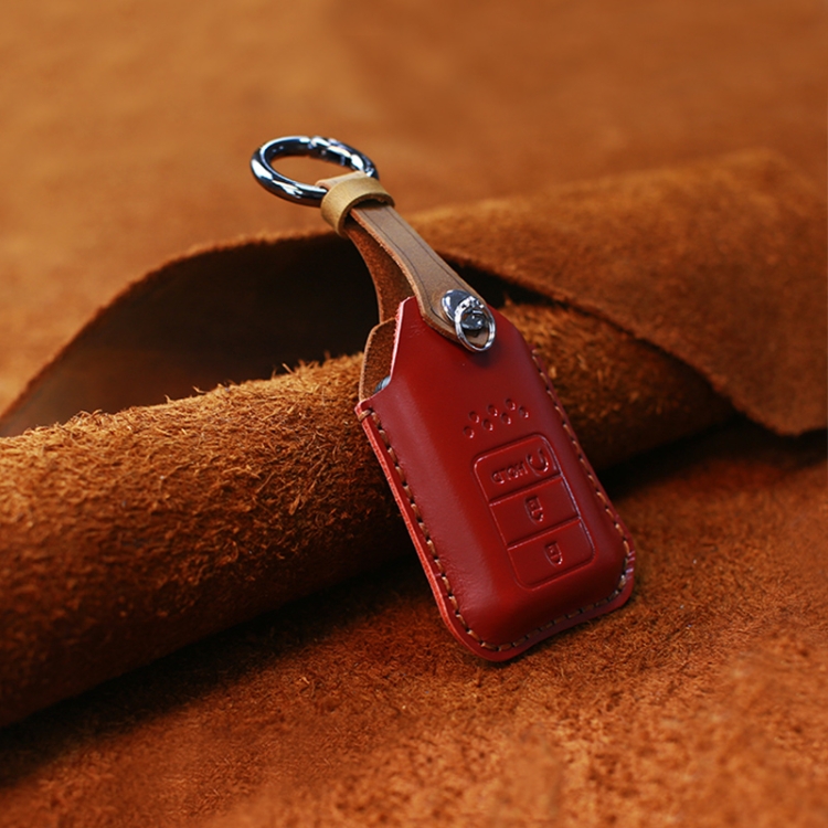 For Honda Car Cowhide Leather Key Protective Cover Key Case, Three Keys Start Version