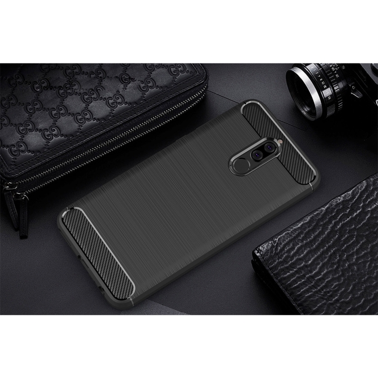 For Huawei Mate 10 Lite Brushed Carbon Fiber Texture TPU Shockproof Anti-slip Soft Protective Back Cover Case