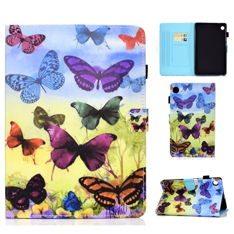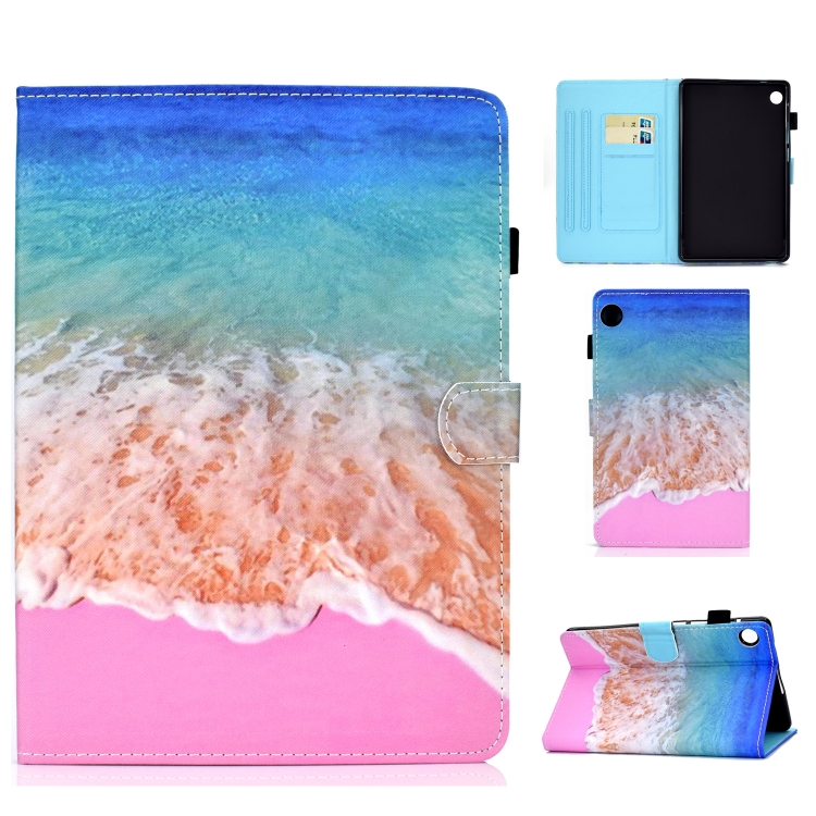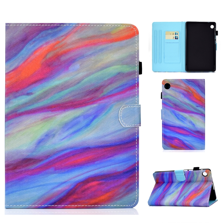 For Huawei MatePad T8 Sewing Thread Horizontal Painted Flat Leather Case with Pen Cover & Anti Skid Strip & Card Slot & Holder