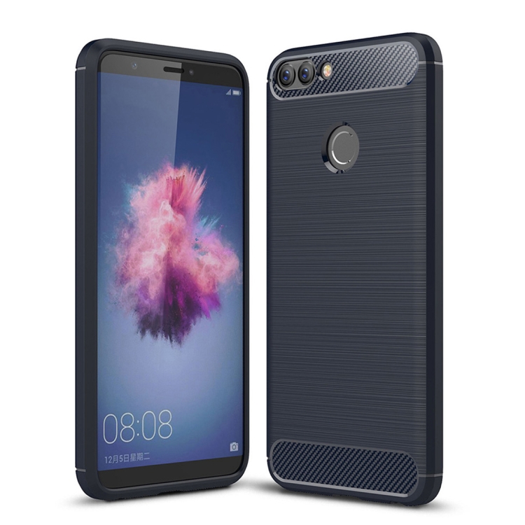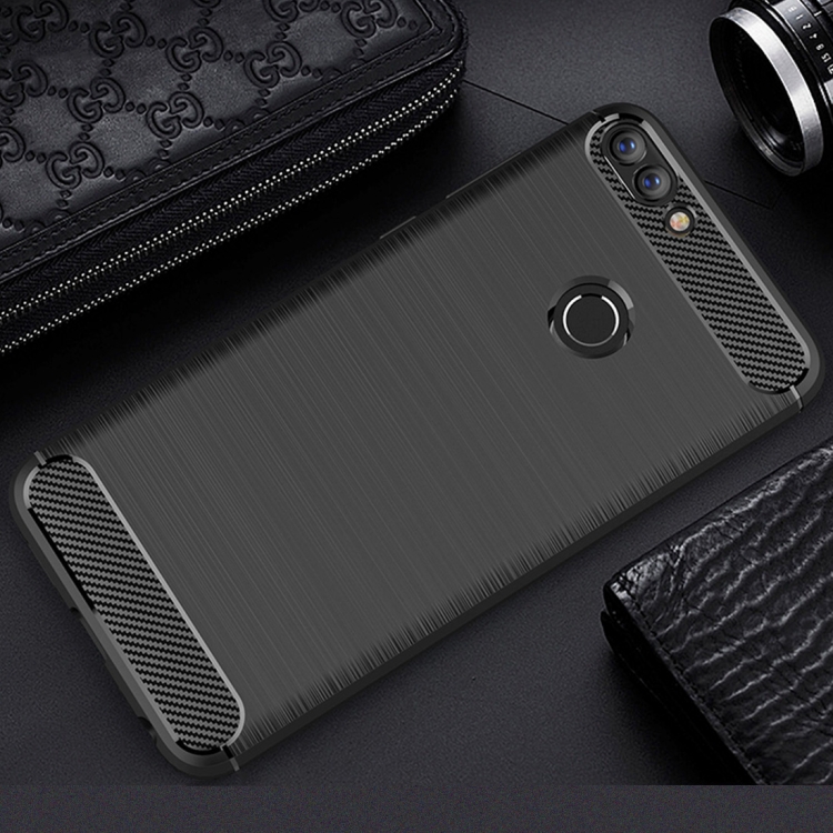 For Huawei P smart / Enjoy 7S Brushed Texture Carbon Fiber Shockproof TPU Protective Back Case
