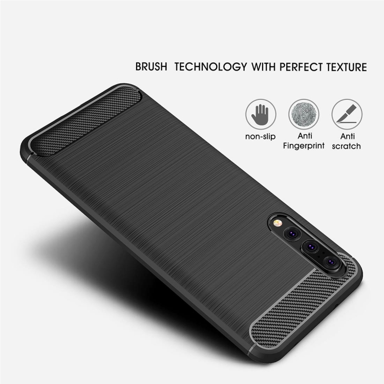 For Huawei P20 Pro Brushed Texture Carbon Fiber Shockproof TPU Protective Back Case