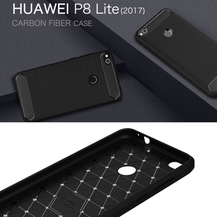 For Huawei P8 Lite (2017) Brushed Carbon Fiber Texture Shockproof TPU Protective Case
