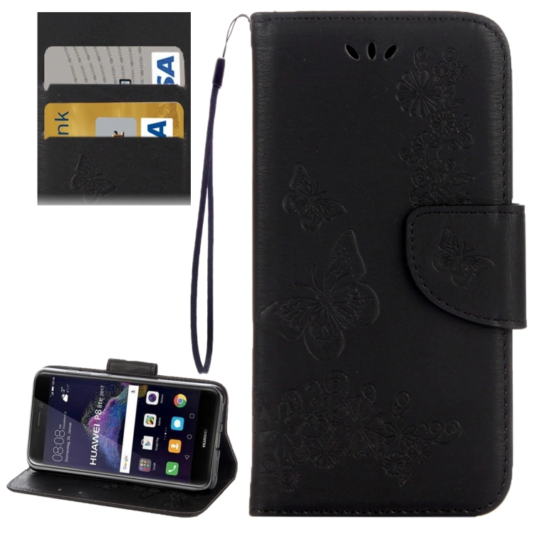 For Huawei P8 Lite (2017) Butterflies Embossing Horizontal Flip Leather Case with Holder & Card Slots & Wallet & Lanyard