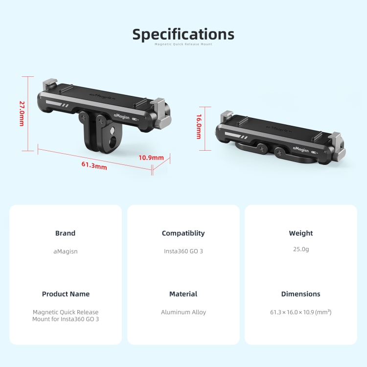 For Insta360 GO 3 / 3S aMagisn Magnetic Fast Disassembly Bottom Seat Bracket Sports Camera Accessories
