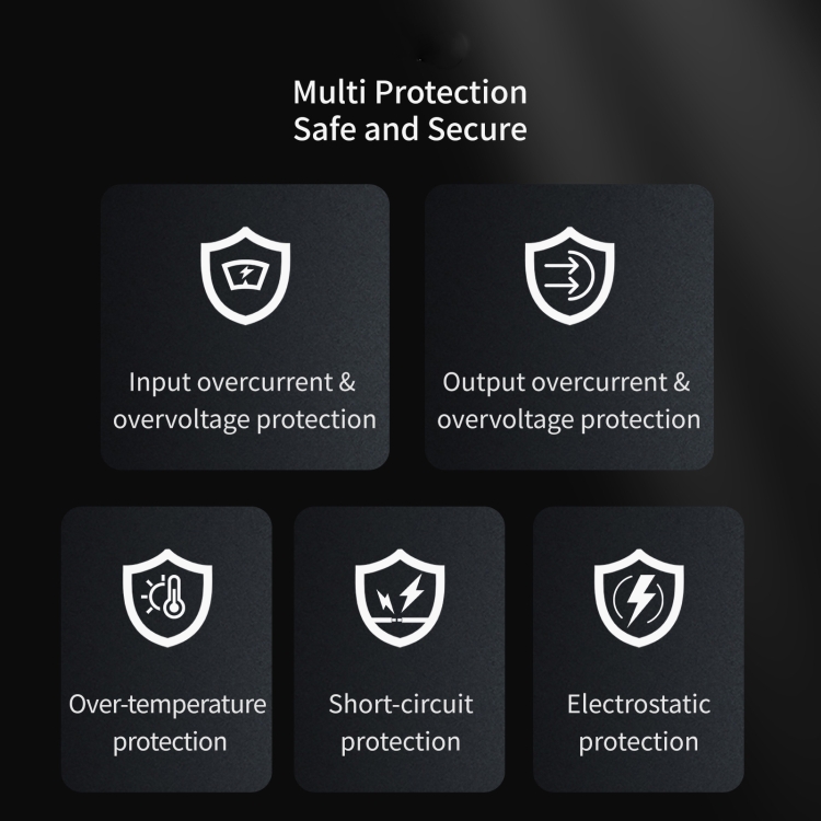 8. Multi-protection, over-current/over-voltage/over-temperature/short-circuit/static protection