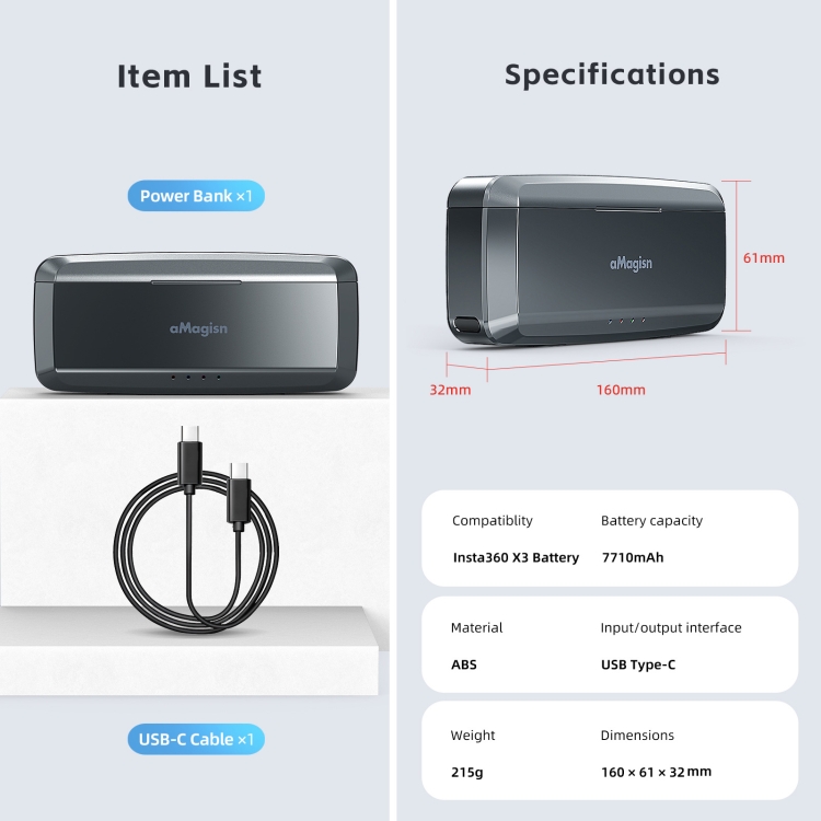 For Insta360 X3 aMagisn Battery Charging Box Fast Charging Mobile Power Bank Movement Camera Accessories