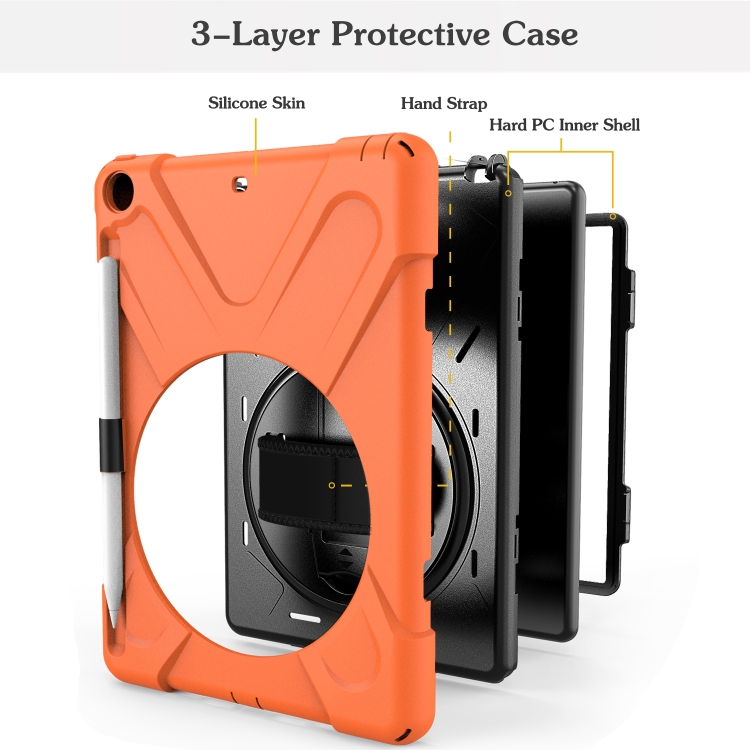 For iPad 9.7 (2018) & (2017) 360 Degree Rotation Silicone Protective Cover with Holder & Hand Strap & Long Strap & Pencil Slot