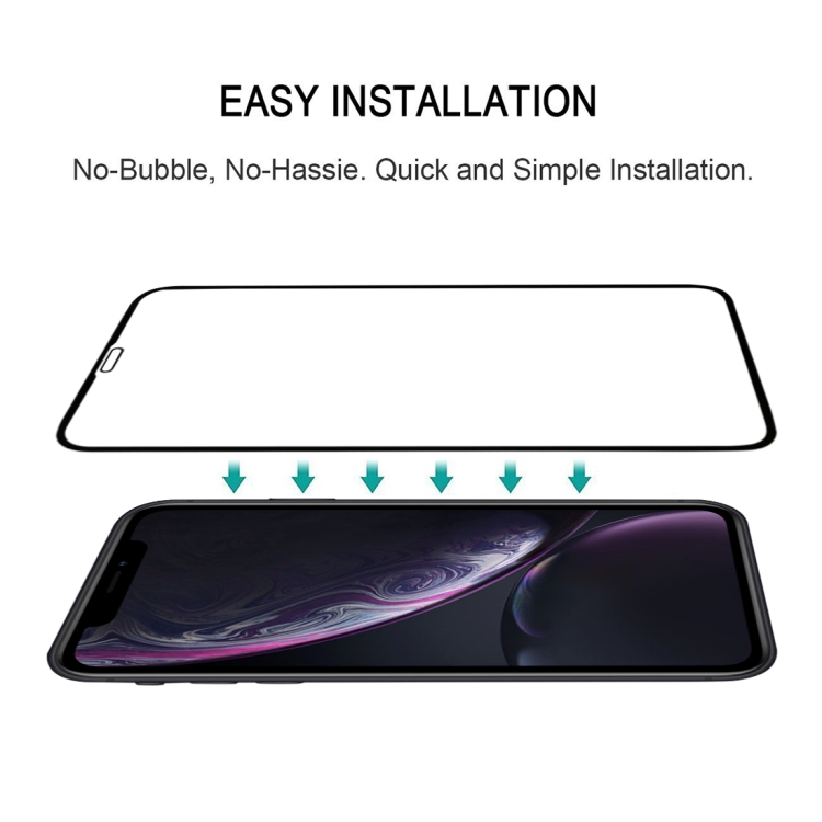 For iPhone 11 / XR Full Glue Silk Print Full Screen Tempered Glass Film, For XR (1 PCS) Black
