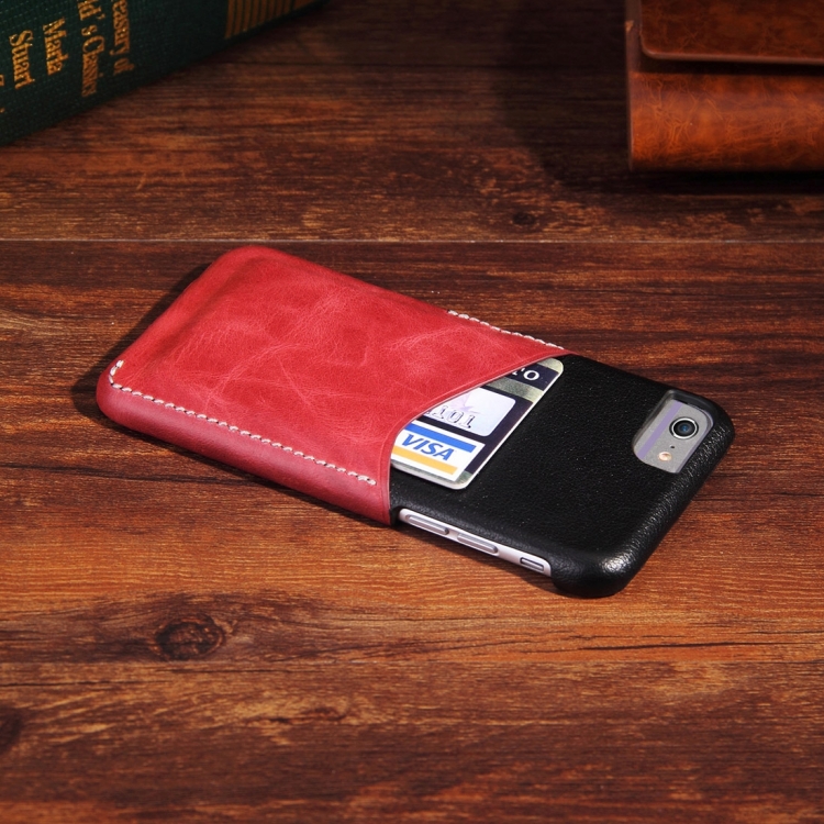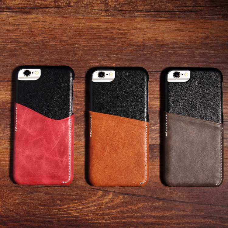 For iPhone 6 & 6s Genuine Cowhide Leather Color Matching Back Cover Case with Card Slot