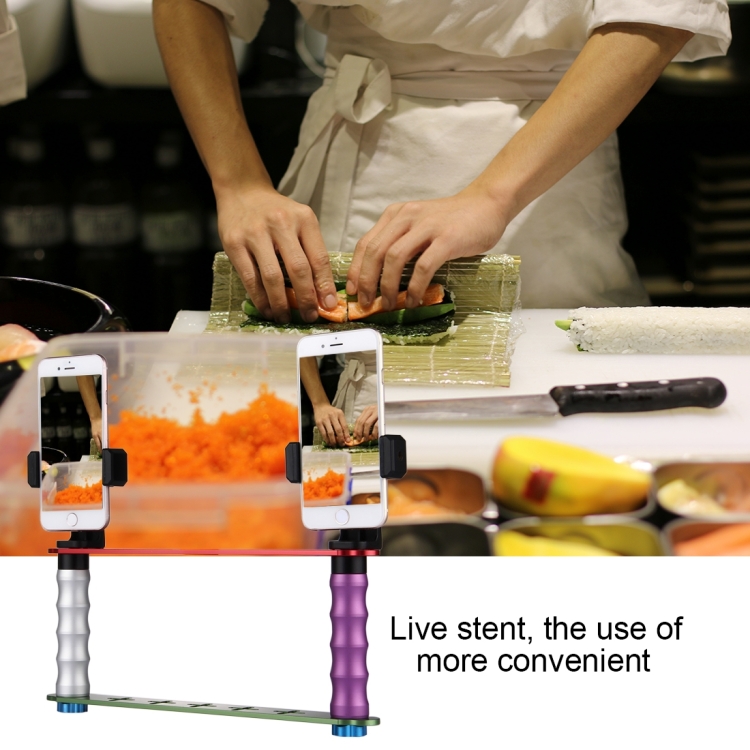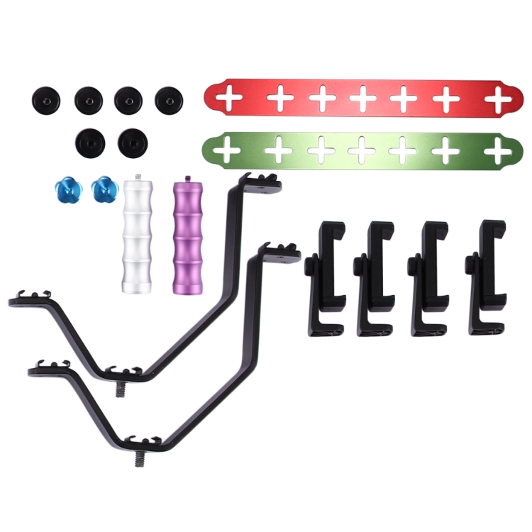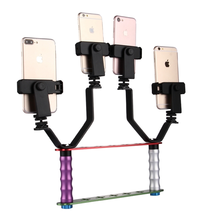 Smartphone Live Broadcast Bracket Dual Hand-held Selfie Mount Kits with 2x V-Bracket + 3x Phone Clips, For iPhone, Galaxy, Huawei, Xiaomi, HTC, Sony, Google and other Smartphones