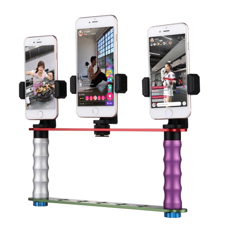 1. Broadcast live tripod, with three 360 degree rotating smartphone holders, easy operation.