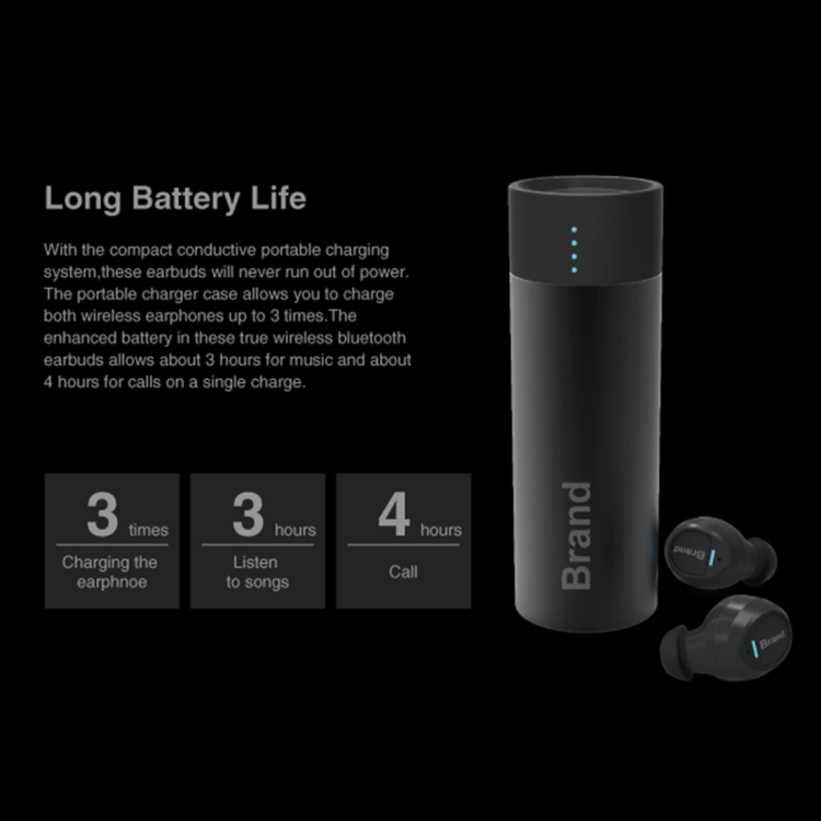 6. Come with portable charing case, built-in li-ion battery, can provide charge for earbuds anytime.