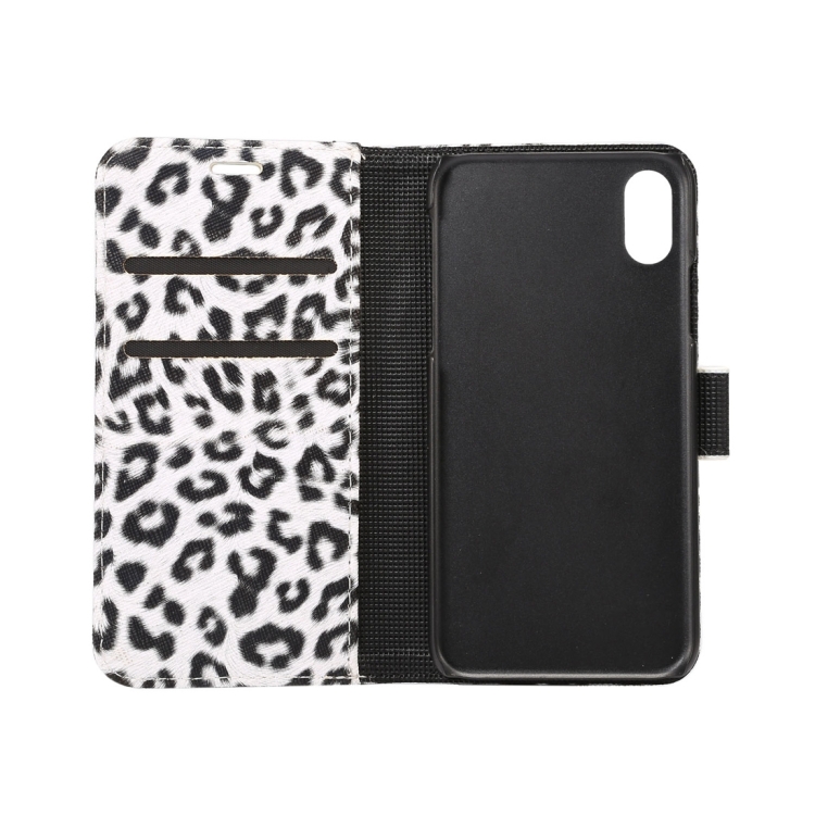 For iPhone X Leopard Pattern PU + PC Horizontal Flip Leather Protective Case with Holder & Card Slots, For X
