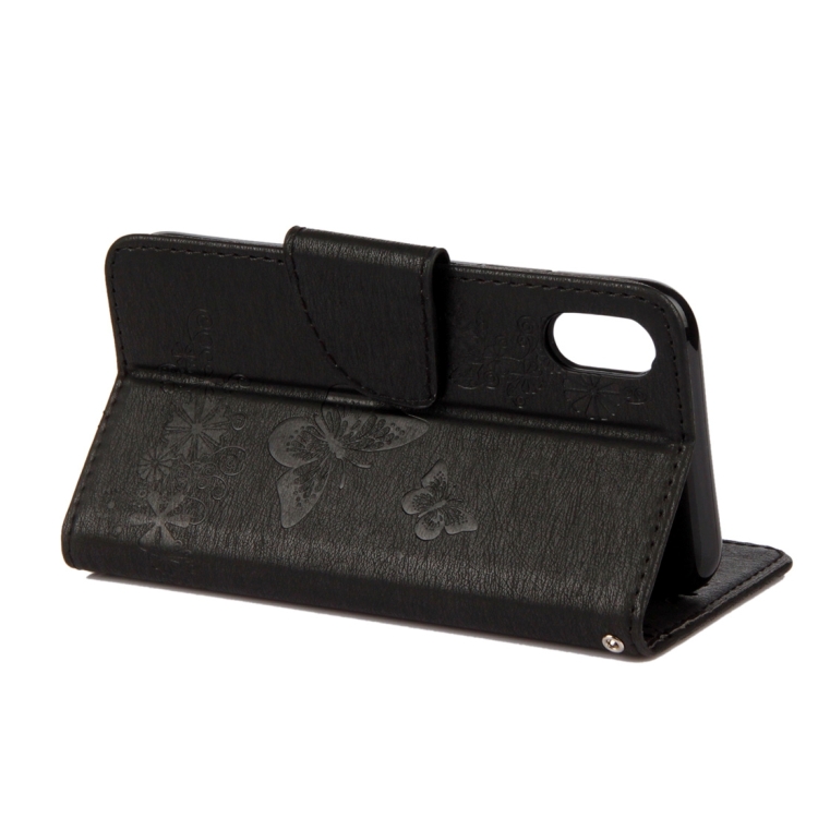 For iPhone X / XS Pressed Flowers Butterfly Pattern Horizontal Flip Leather Case with Holder & Card Slots & Wallet & Lanyard, For X