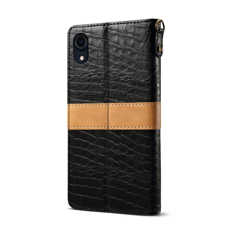For iPhone XR Splicing Color Crocodile Texture PU Horizontal Flip Leather Case with Wallet & Holder & Card Slots & Lanyard, For iPhone XR