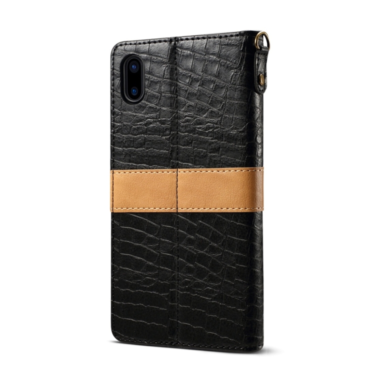 For iPhone XS Max Splicing Color Crocodile Texture PU Horizontal Flip Leather Case with Wallet & Holder & Card Slots & Lanyard, For iPhone XS Max