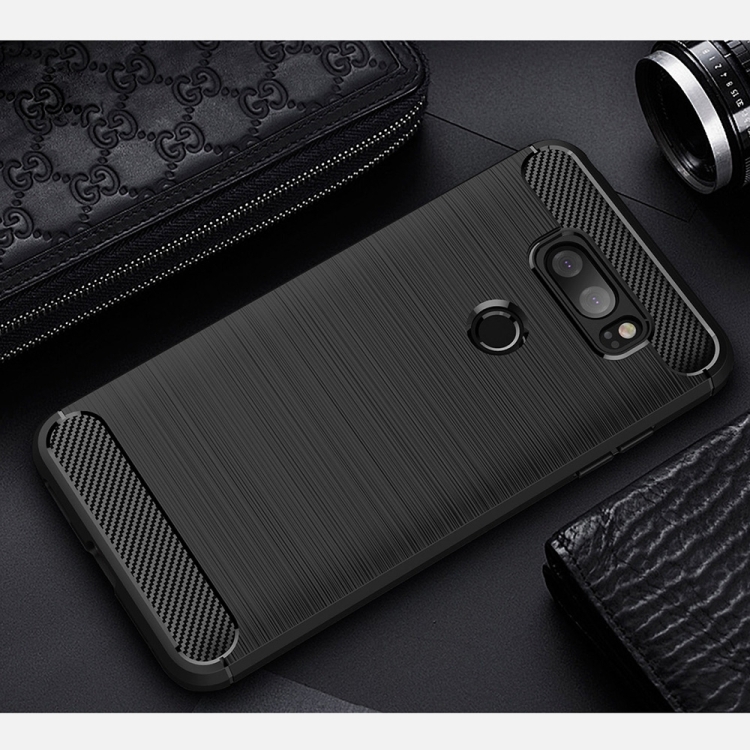 For LG V30 Brushed Texture Carbon Fiber Shockproof TPU Rugged Armor Protective Case