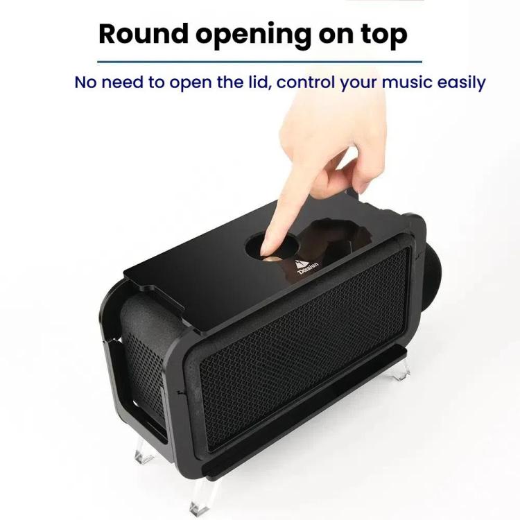 3. Top Circular Access Port: Integrated circular opening allows easy access to touch controls or buttons without removing the speaker from the stand.