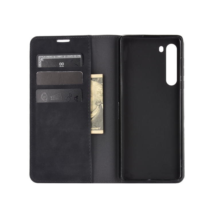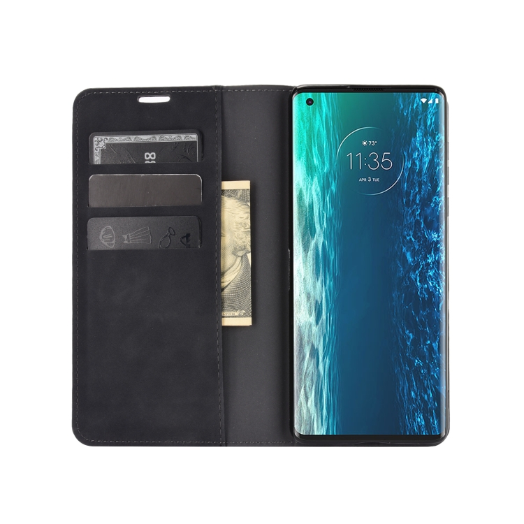 For Motorola Moto Edge Retro-skin Business Magnetic Suction Leather Case with Holder & Card Slots & Wallet