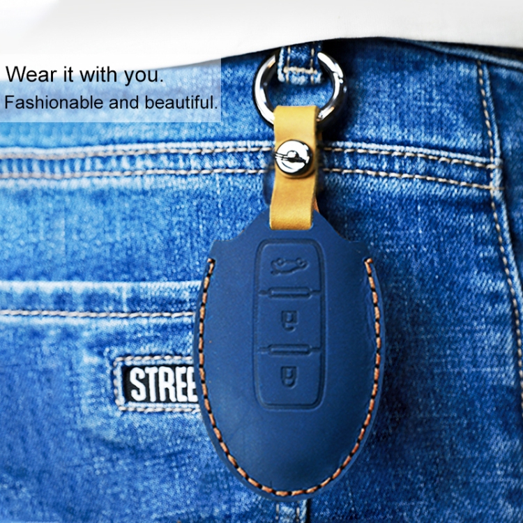 For Nissan Car Cowhide Leather Key Protective Cover Key Case, Three Keys Horizontal Line Version