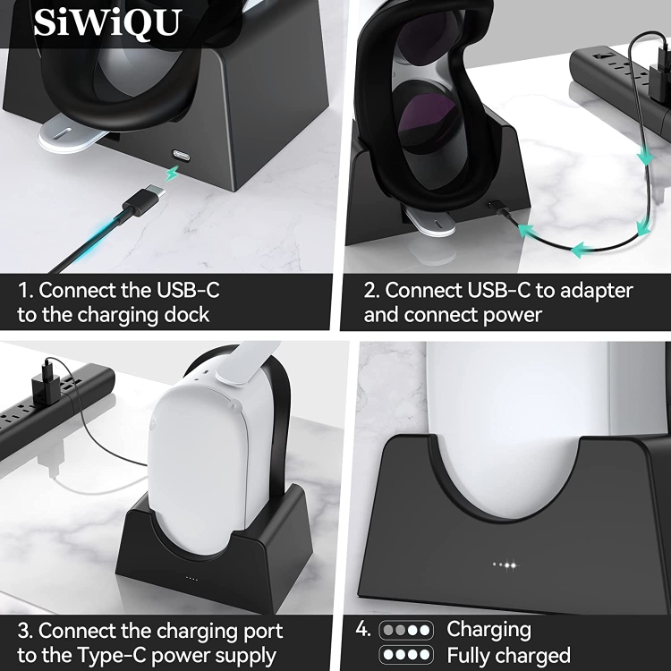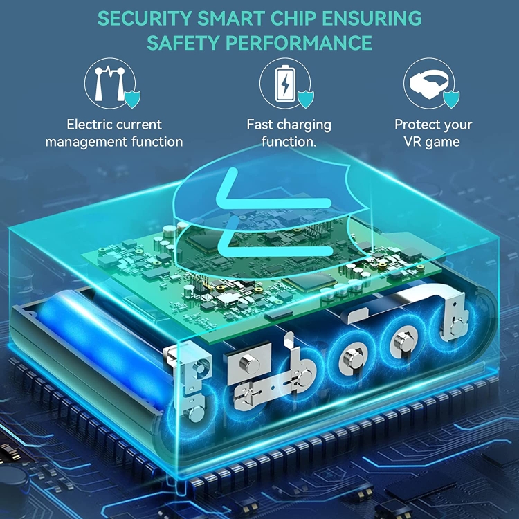 2.Safety Smart Chip,This oculus charging base uses a smart chip with current management function and fast charging mode. Make sure the current and voltage are within the proper range to effectively protect your VR game from damage during charging, fast charging while ensuring safe performance.