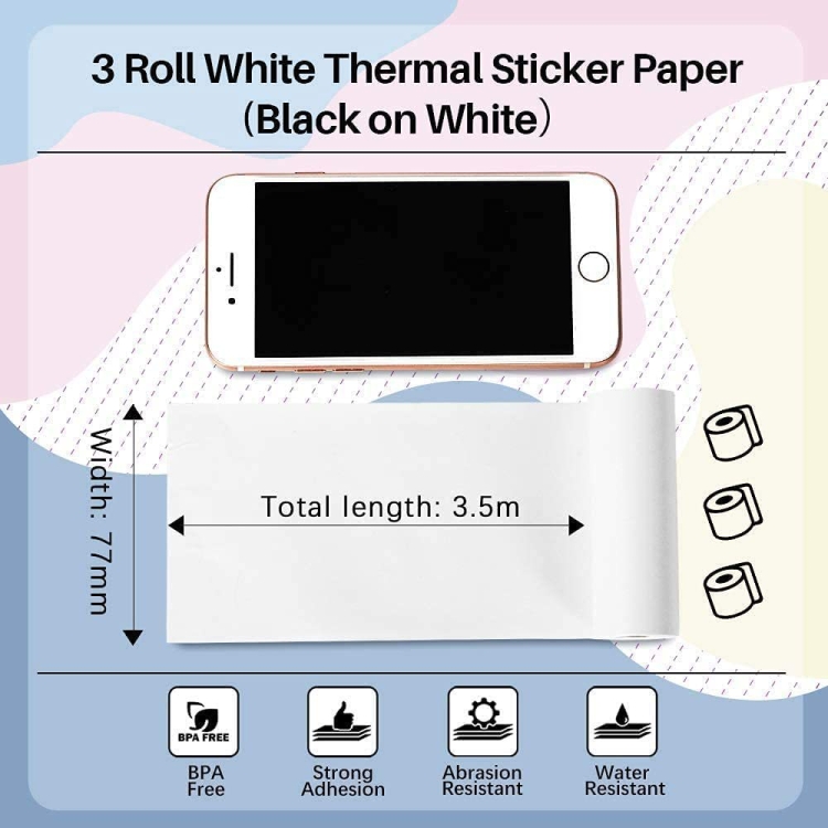 For Phomemo M03 Series 3rolls /Pack 80mmx3.5m 10 Years Thermal Self-adhesive Black on White Printing Paper