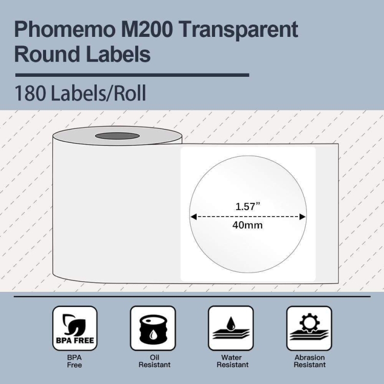 For Phomemo M110 / M200 180pcs /Roll 40x40mm Circular Transparent Self-Adhesive Tag