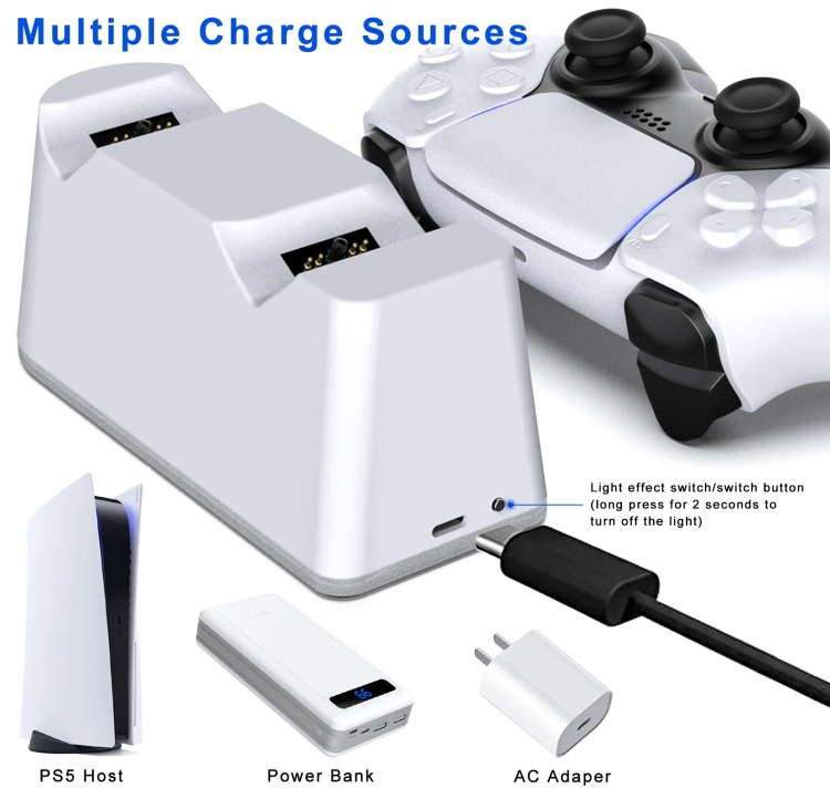 For PS5 Handle Charger Colorful Grip Double Fast Charging LED Lamp Seat Charger