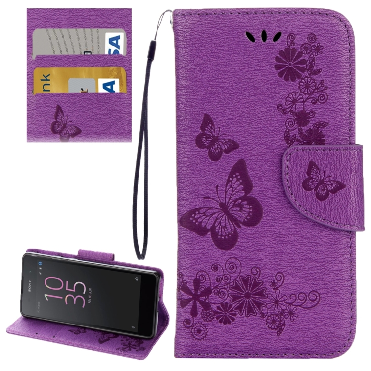 For Sony Xperia E5 Butterflies Embossing Horizontal Flip Leather Case with Holder & Card Slots & Wallet & Lanyard