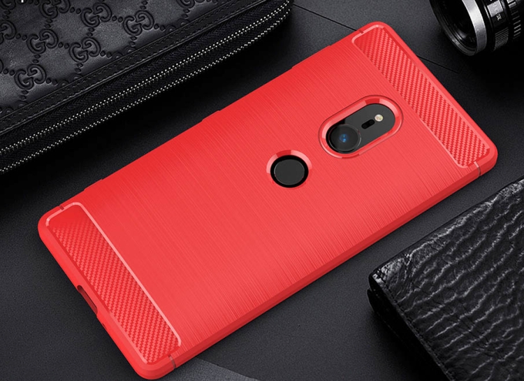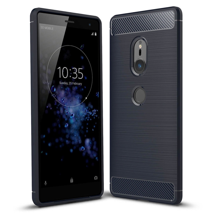 For Sony Xperia XZ2 Brushed Texture Carbon Fiber Shockproof TPU Protective Back Case