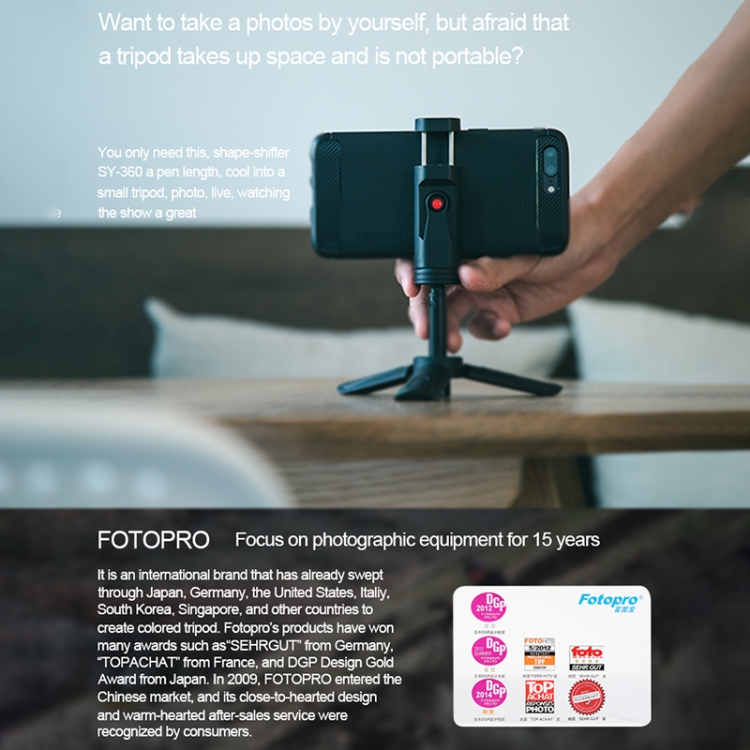 Fotopro SY-360 Desktop Vlogging Tripod Mount with 360 Degree Rotation Phone Clamp for Small Digital Cameras & Smartphones