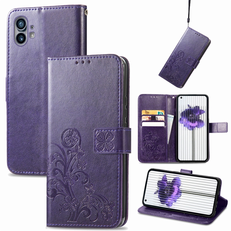 Four-leaf Clasp Embossed Buckle Leather Phone Case