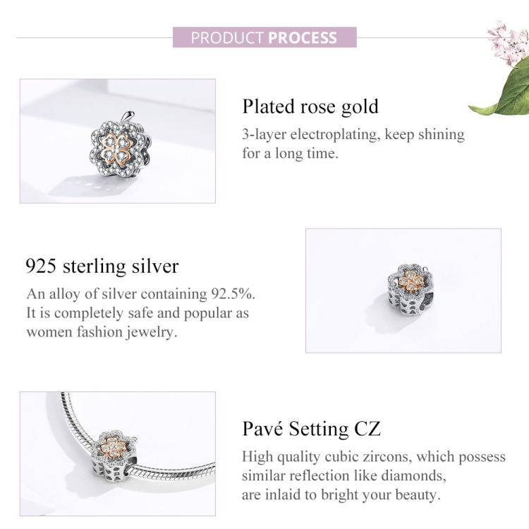 1. Material: 925 silver + platinum plated + rose gold plated + zircon
