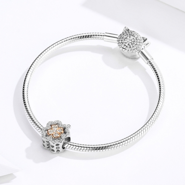 Four Leaf Clover Zircon Beaded S925 Sterling Silver DIY Bracelet Accessories