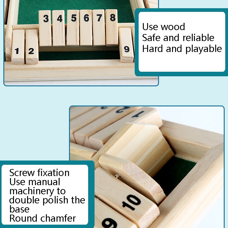 5. Features: using wood, safe and reliable, hard and playable, fixed with screws, using manual machinery to double polish the base, round and chamfered, using foam cotton, soft and comfortable, 1 game reel with 2 dice
